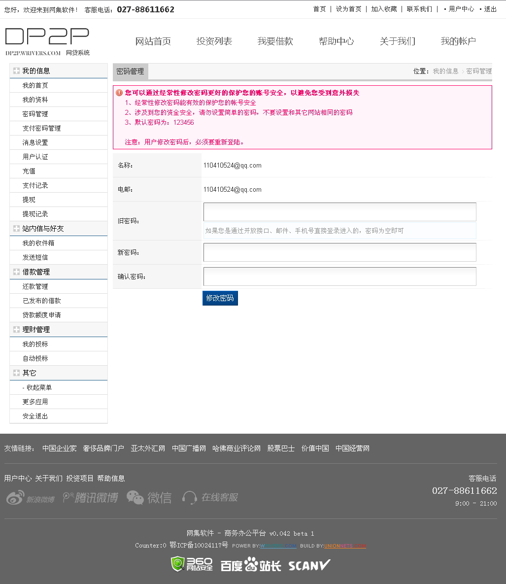 | 投资项目投资 | 单次可最高投资额、最低可投资额、单次第增额、投资合同、投资密码、投资时需支付密码;项目投资验证、项目投资资金锁定等 |