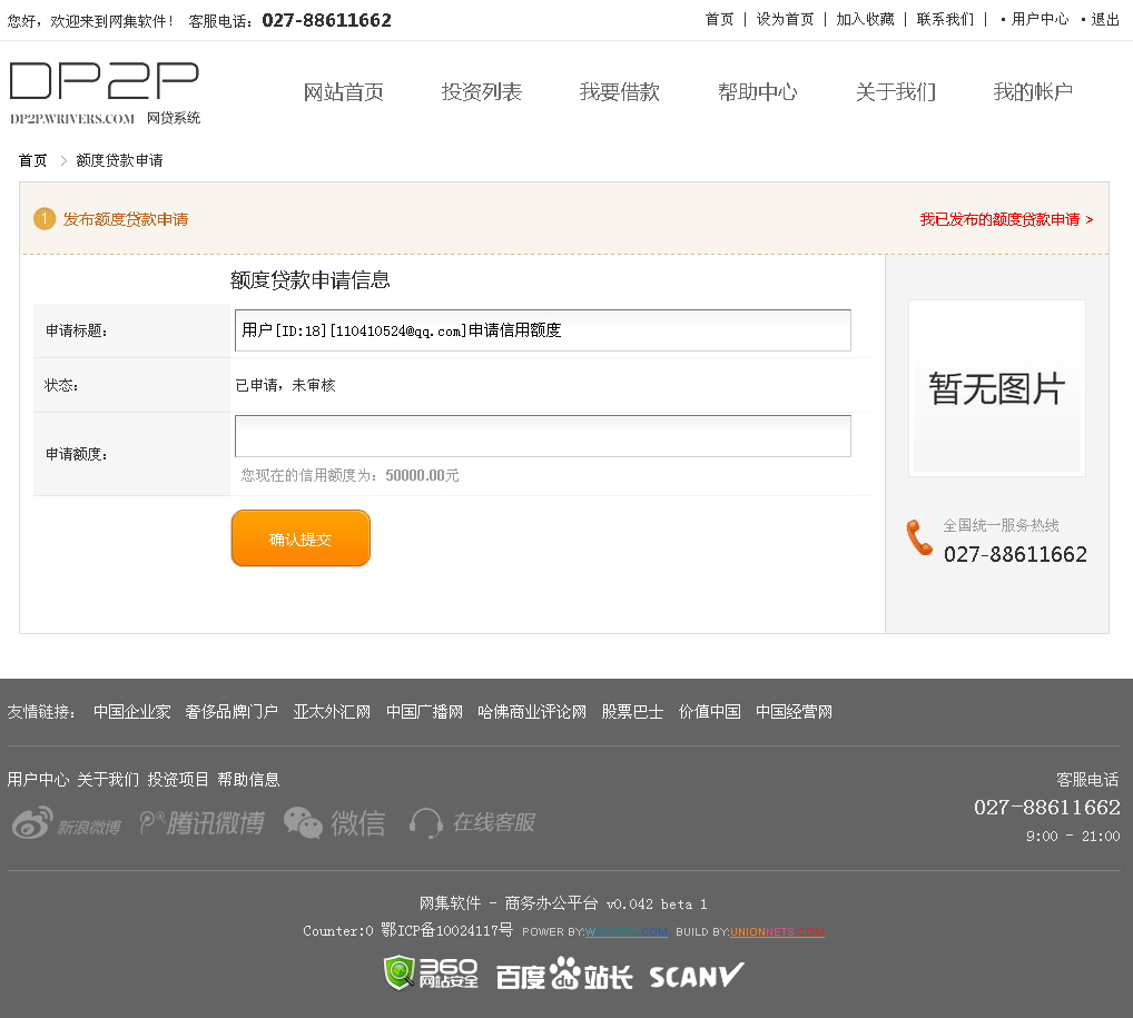 | 贷款额度申请 | 用户信用借款额度的申请 |