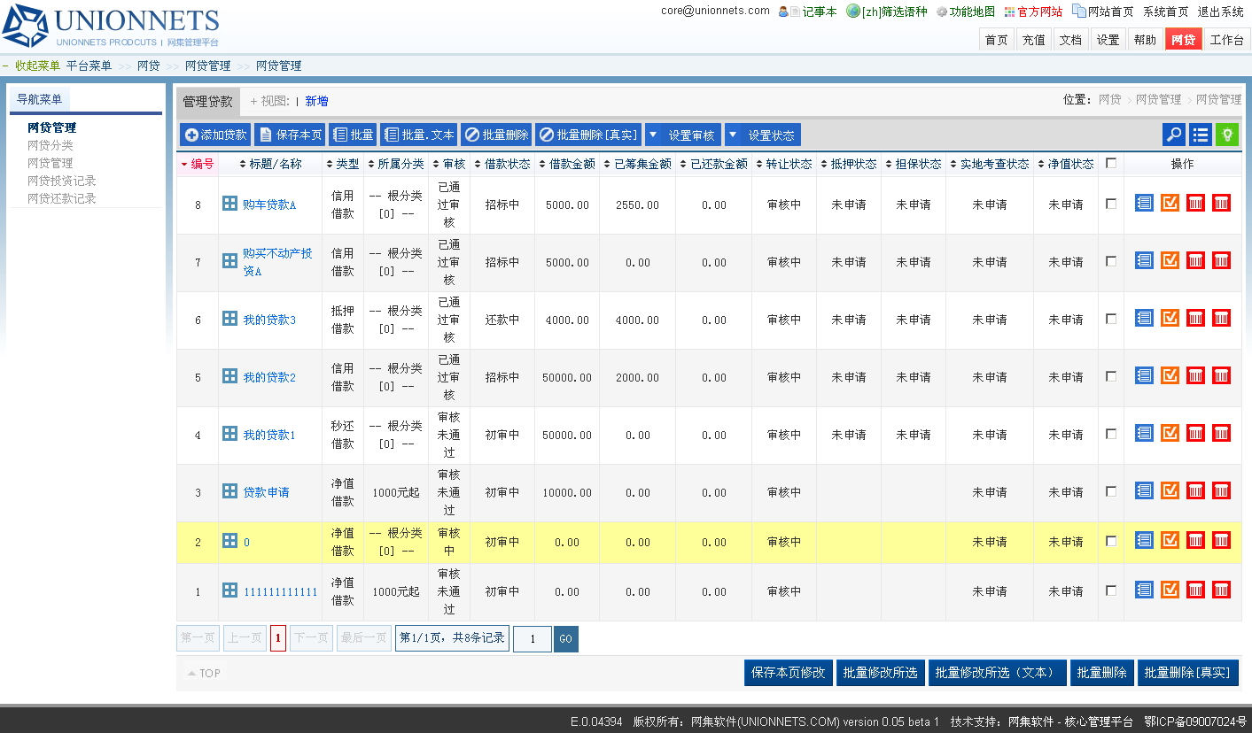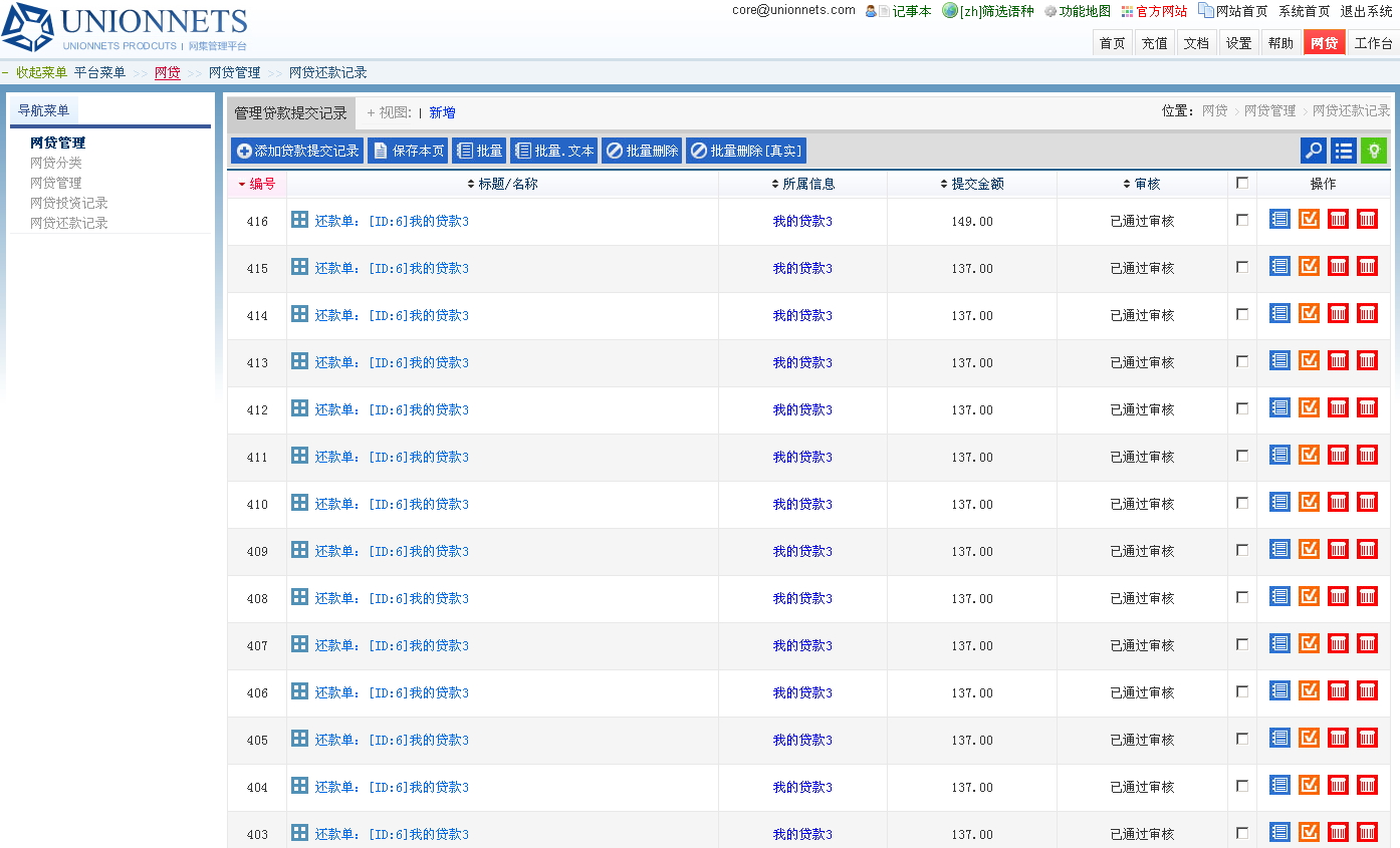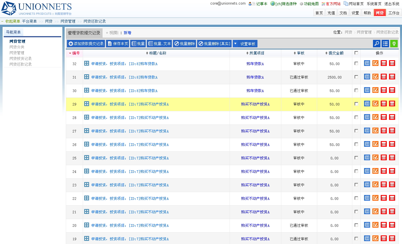 | 未审核的投资记录 | 投资需管理员审核,这里筛选出未审核的投资记录 |